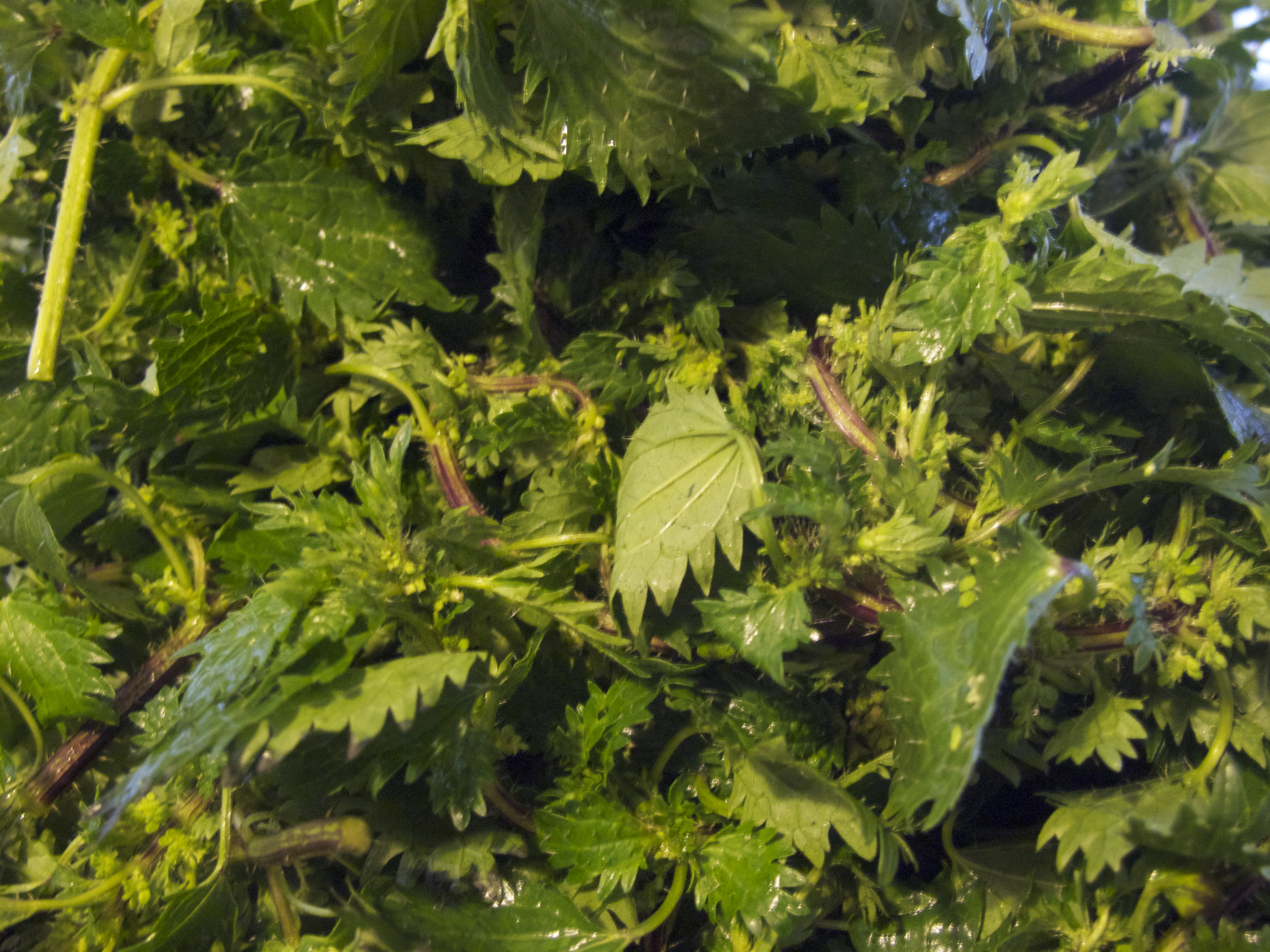Anneannemin en kendine has lezzet zenginliklerinden biridir dalgan kavurması, bir başka versiyonu ise “dönderme”dir, onun deyişiyle. Bir başka yazıda döndermenin tarifini görselleriyle birlikte paylaşacağım. Dalgan kavurması için bir ya da iki bağ ısırgan yeterlidir. Kumlarını, çamurlarını artık kaç suda arıtabilirseniz güzelce yıkamak işin en zor kısmı. Kavurma için üç dört sap pırasa gerekiyor ayrıca. Pırasaları kesilebilecek en ince ve küçük şekilde kesip dalgandan önce zeytinyağıyla iyice öldürmek ilk safha. İkinci aşamada dalganları doğrayıp azar azar tavaya ilave ediyorsunuz. Başlangıçta dalgan demetleri sanki hiçbir kaba sığmayacak gibi oluyor ama panik yapmadan ısıyı yedikçe sönmelerini bekleyin. Zaten bir süre sonra kavrulmuş pırasalarla kaynaşıp başlıyorlar şenliğe. Ben bu denememde yıkanmış ıspanağım olduğu için birazcık ekleyip sonucu görmek istedim. Ispanağın dalgana göre daha tatlımsı olan lezzeti dalganın tadını yumuşattı diyebilirim. Ancak orijinal yapılışında ıspanak yok. Ben yaklaşık iki senedir tuzu hayatımdan çıkardığım için tariflerde tuz miktarını belirtmeyi unutuyorum. Zaten tuz zevki çok göreceli birşey. Arzum herkesin tuzsuz yemesi. Zira her sebzenin içinde doğal olarak tuz var ve Avrupa ortalamasının çok üstünde tuz tüketim alıkanlığımız olduğundan ekstra tuz kullanımını azaltmamız gerektiğini düşünüyorum.