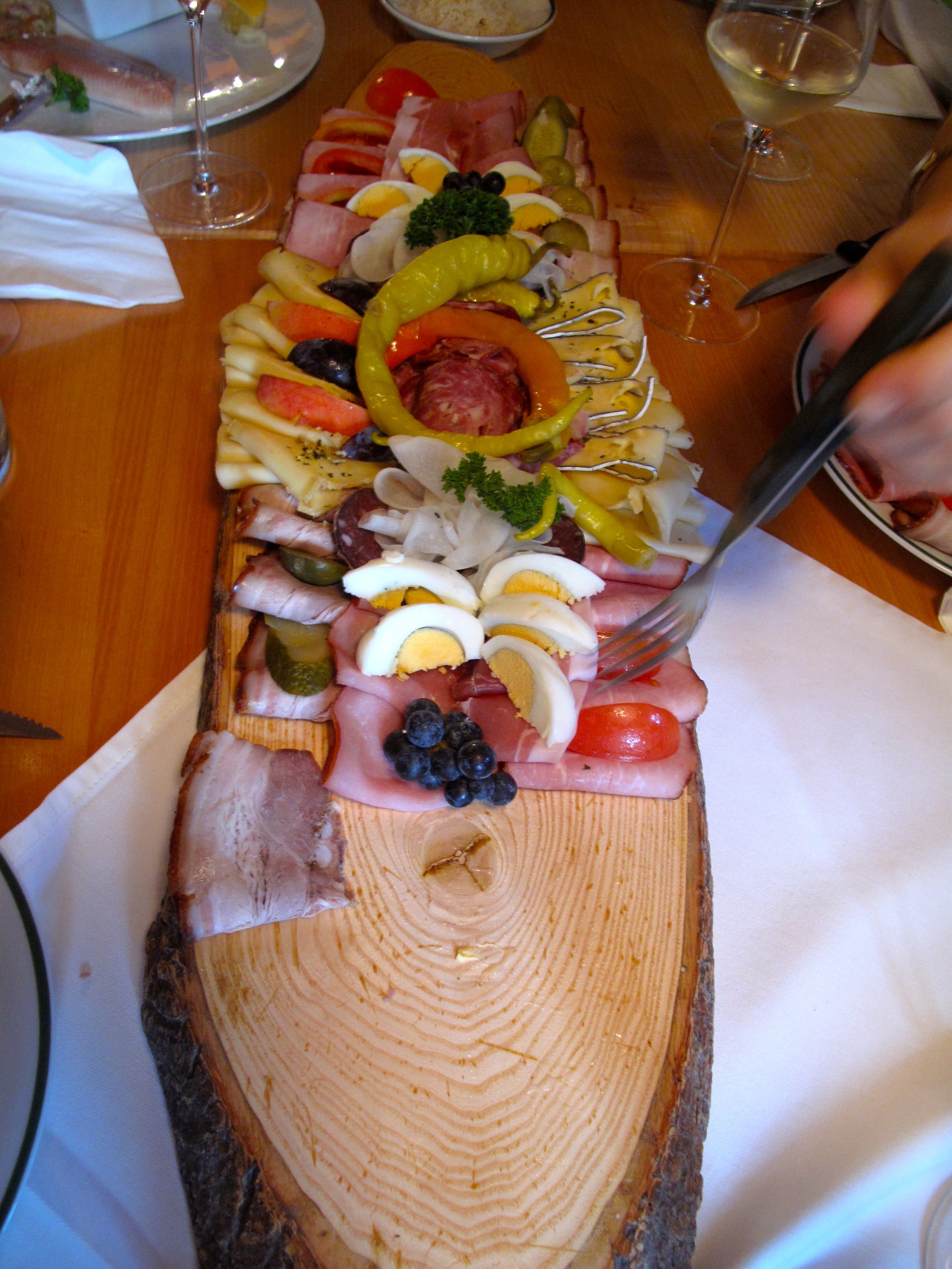 Gezinin sonunda dağ başında, orman havası içinde yerel lokantalardan birinde iç gıcıklayıcı lezzetler bizi bekliyordu. Sunumun nasıl yapıldığı doğaya dair ipucu verebilir. Geziden bir arkadaşımla, lokantanın ürünü olan kırmızı şarabın daha çok yakışacağını düşündüğümüz için akşam yemeğinde bir şişe kırmızı şarabı götürüyoruz.