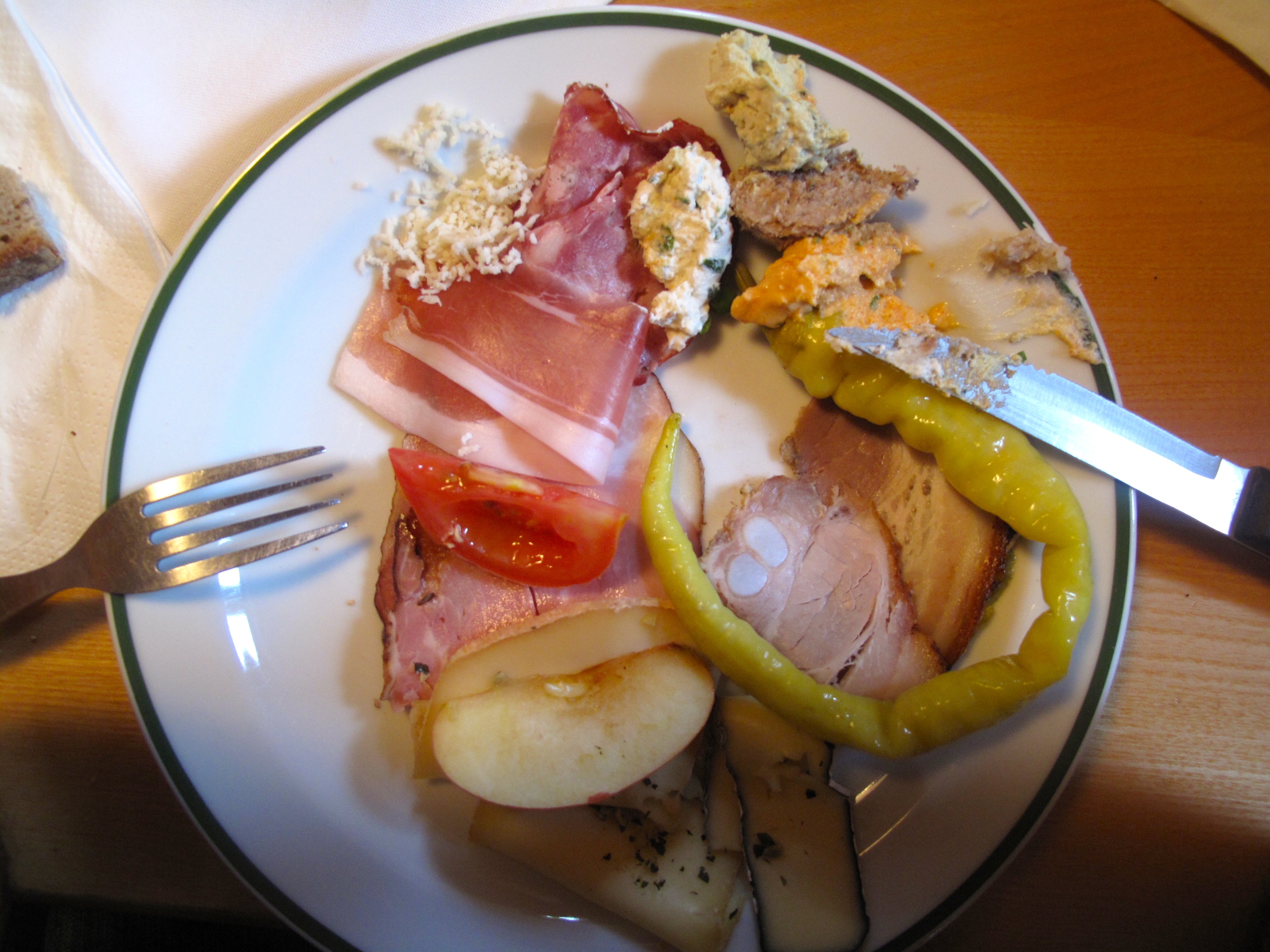 Bu blogun takipçileri açısından heyecan verici detaylar şimdi geliyor… Konferansın teması “food” olunca haliyle yeme-içme pek bir ehemmiyet kazanıyor. Bugüne kadar katıldığım konferanslar içinde günlük ödediğim rakamın bu kadar az, yemeklerin bu kadar şahane olduğu başka bir konferans hatırlamıyorum. Styrian bölgesinin organik sebzelerinden, etlerinden hazırlanmış açık büfe yemekler zengin çeşitte (vejeteryan menüler de dahil) ve çok doyurucuydu. Kahvaltıda (ve kahve aralarındaki) kahve makinelerinde olan “bio” kahve çekirdeklerinden mi bahsetsem, kahvenin yanında ikram edilen apfelstrudellerden mi, şarküteri ürünlerinden mi acaba? Almanya, Avusturya denince ekmeklerin çeşitliliğini ve besleyiciliğini ayrıca vurgulamak gerekiyor. Görgüsüzlük olarak algılanmasından çekindiğim için konferans boyunca yemek faslının fotoğraflarını çekmedim. Konferansın geneline dair nasıl etkileyici bir organizasyon olduğunu http://foodscapesgraz.wordpress.com/photos/ linkindeki fotoğraflardan görebilirsiniz.