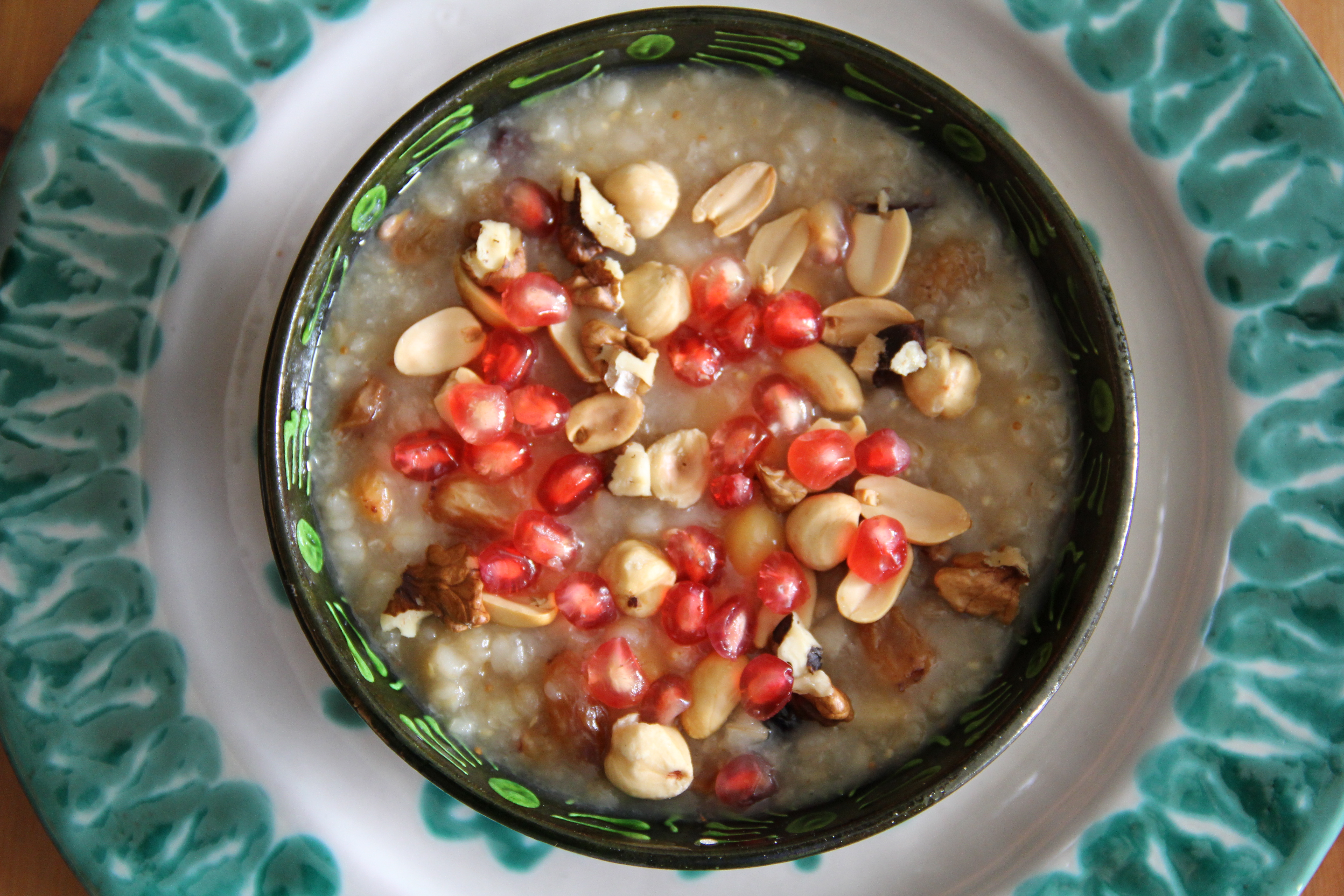Müstakil evlerin olduğu, komşulukların yoğun yaşandığı bir sokakta mutlu bir çocukluk geçirdim. Aşure çocukluğumun en güzel sürprizlerinden biriydi. Aşure zamanı komşular sanki sözleşmiş gibi birbiri ardına sıcak sıcak aşure getirirlerdi. Her hanenin bereketini simgelerdi aşure. Üzerinde kavrulmuş susam, fıstık, badem, fındık ne varsa elde avuçta, aşure kazanının içinden büyülenmiş bir şekilde çıkardı.