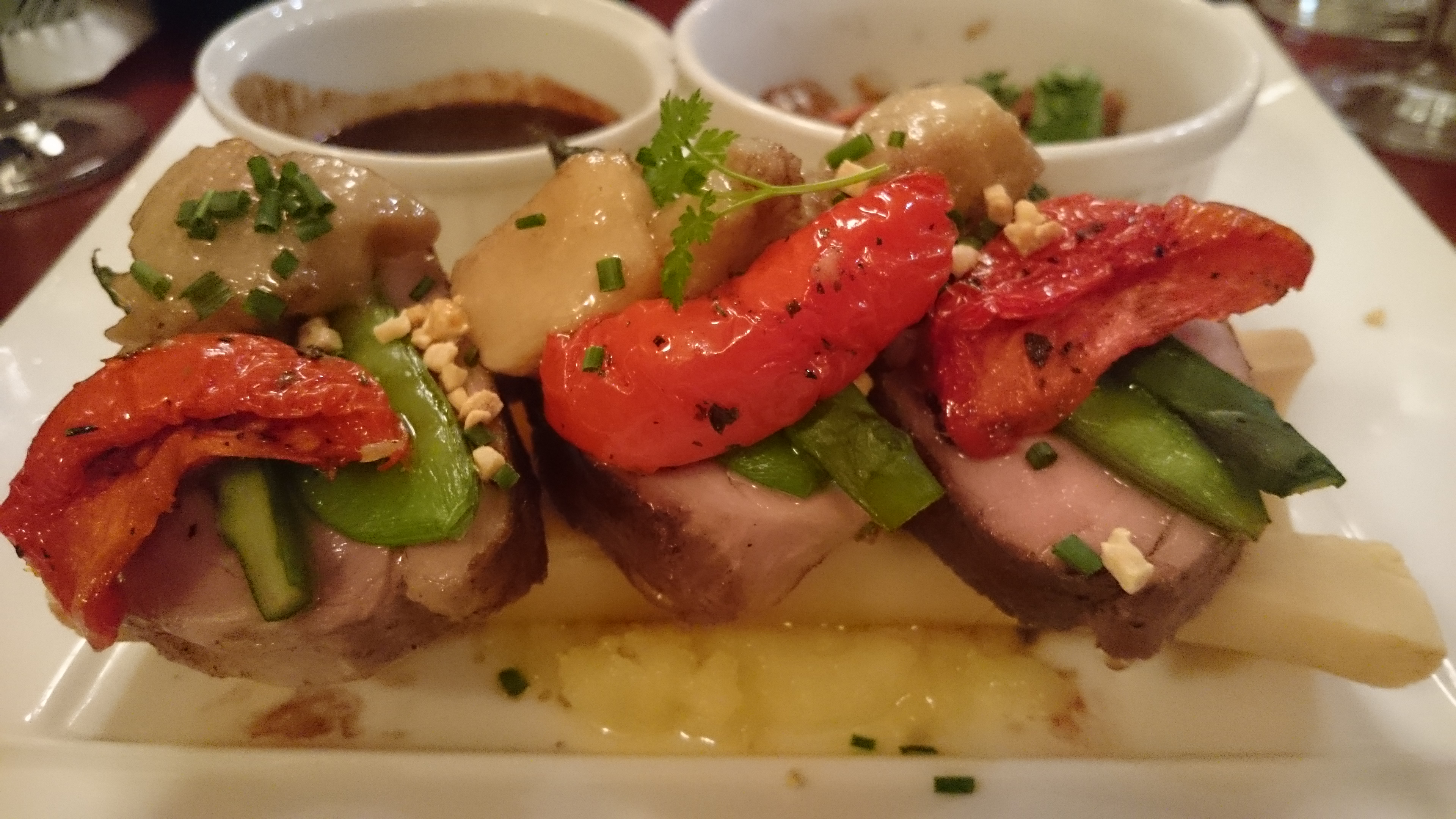 Bizdeki zarf mazruf meselesi, mekânların dış görünüşlerinin, dekorasyonlarının abartılı olması, ancak menülerinin, sundukları yemeklerin niteliğinin olmaması ile sonuçlanır genellikle. Üstelik abartılı iç mekân tasarımları yüksek fiyatlarla size yansıtılır. Oysa Fransa’daki gözlemim yeme-içme mekânların son derece özgün, karakterli ama bir o kadar da mütevazı bir mekân tasarımının olmasıydı. Nitelikli aşçıların mahareti size sunulan tabaklardaki yemeklerde ve sunumlarda ön plana çıkıyor. Bistrot Gourmand Le Chien Jaune‘de yemekler ve set menüler 19-29 € aralığında. Lezzet, fiyat, sunum, servis performansı olağanüstünün de üstünde. Dolayısıyla belki de Michelin yıldızlı bir mekândansa Michelin tarafından önerilen bir lokantada yemek yemek çok daha hesaplı ve her açıdan tatmin edebilir diye düşünüyorum. Ben set menü alarak, başlangıç için Poélée de Ris de Veau, tuiles au lard, anayemek olarak Mignon de porc a la moelle, tatlı olarak da Feuiletté de Poire tiede denedim. Hepsi ama hepsi sunum ve lezzet olarak olağanüstüydü.