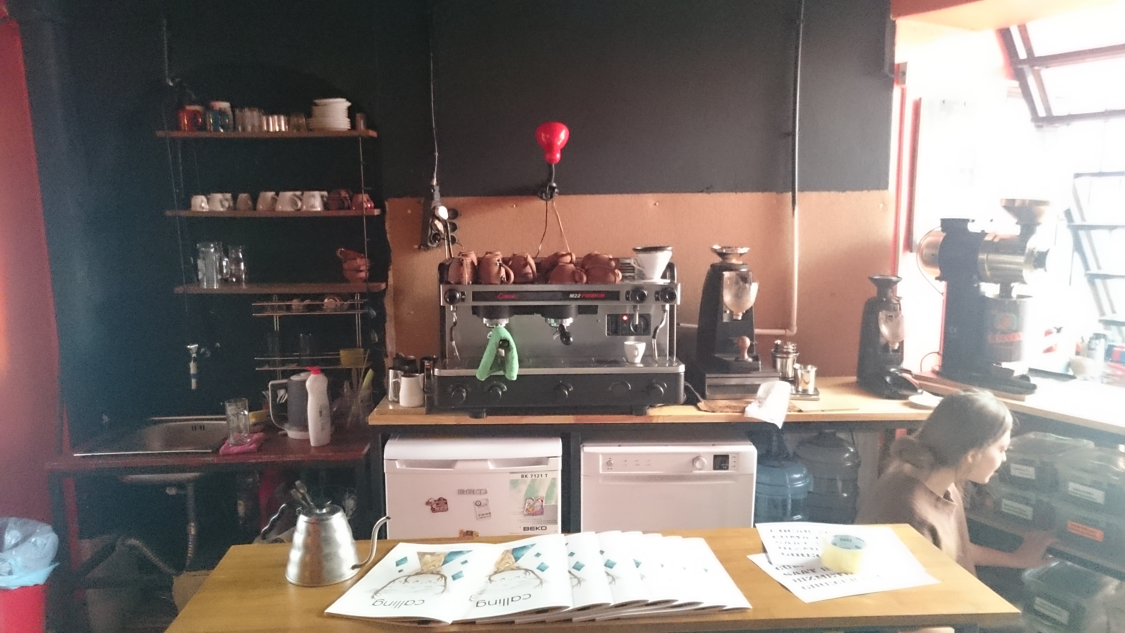 Yılın son gününü Gülbin’le birlikte kendimize ayırdık. Dışarıdaki soğuğa inat içimizi ısıtan kahveci keşifleriyle günümüz harika geçti. İlk durak Blackcat Coffee. Burası aslında kahve çekirdeği toptancısı.  Eskişehir’deki pek çok kafeye çekirdek satıyorlar. Bu nedenle mekân profesyonel mimarlık elinden çıkma değil. Amatör ruh mekânın karakteri adeta. Eskişehir’deki mekânlara has doğaçlama figürler ve tasarım barındırıyor. Her şey ortada zaten. Swarmapp’taki bir yorumla “babaanne koltukları” var dört beş tane.
